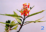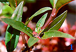 | 1. Monarch-Eier, kleine weiße Zäpfchen (ca. 1,5 mm lang), die an alle Pflanzenteile der Futterpflanze "asclepias curassavica" (Tropical Milkweed - auch Seidenpflanze genannt)) geheftet werden. |