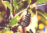 | 4. Raupe, die sich zum Verpuppen aufgehängt hat |