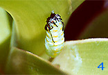 | 1. Raupe des Kleinen Monarch-Schmetterlings |